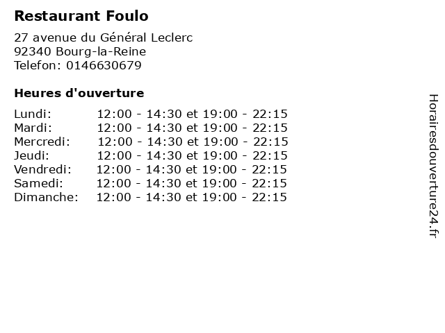 Lundi | 12:00-14:30 et 19:00-22:15 |