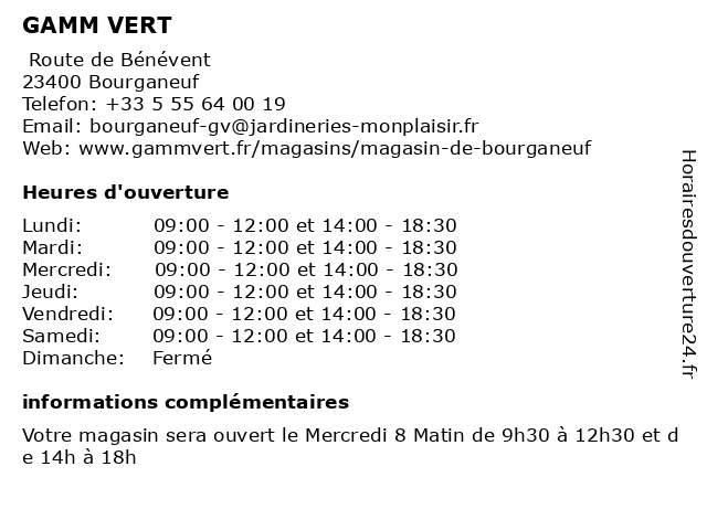 | Samedi | 09:00-12:00 et 14:00-18:30 |