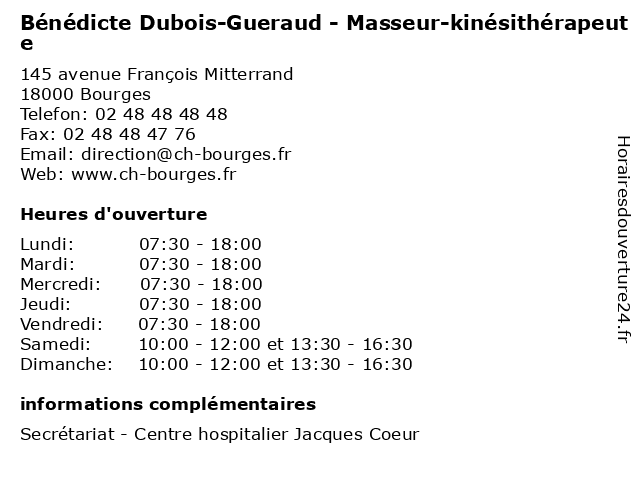 1 Dr Bénédicte Labbens - Médecin urgentiste (Distance: 0,08 km) 145 avenue François Mitterrand, 18000 Bourges bénédicte, centre, coeur, dr, hospitalier, jacques, labbens, medecin, médecin, soins, urgence, urgentiste 2 Claire Gueraud - Sage-femme (Distance: 6,65 km) 210 route de Vouzeron, 18230 Saint-Doulchard claire, consultation, docteur, femme, gueraud, med, médecin, médecine, sage, traitement 3 École maternelle publique Roger Dubois (Distance: 16,46 km) . Vornay, 18130 Vornay cours, dubois, education, maternelle, publique, roger, services, école 4 Dr Stephane Gueraud - Médecin généraliste (Distance: 18,76 km) - Rue du Professeur Luc Montagnier, 18500 Mehun-sur-Yèvre consultation, docteur, dr, gueraud, généraliste, med, médecin, médecine, secrétariat, stephane, traitement 6 Etablissements Dubois Boulay (Distance: 39,20 km) Chavignol, 18300 Sancerre boulay, dubois, etablissements |