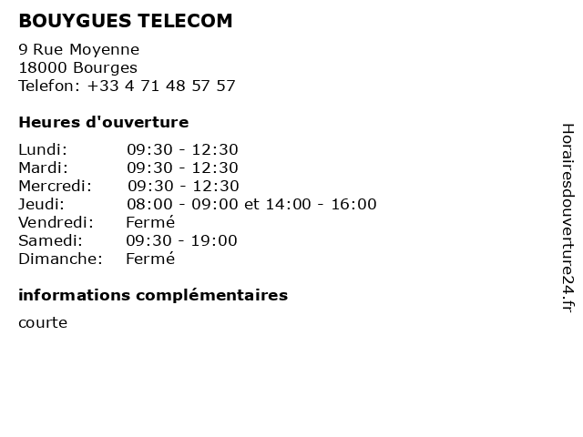 1 BOUYGUES TELECOM (Distance: 0,11 km) 2 Rue du Commerce, 18000 Bourges bouygues, fai, fournisseur d'accès internet, telecom, téléphonie mobile 3 BOUYGUES TELECOM (Distance: 3,29 km) 548 Route d'Orléans, 18230 Saint-Doulchard bouygues, clef, telecom 4 Welcom' - Coriolis Telecom (Distance: 2,04 km) . Chaussée de Chappe, 18000 Bourges coriolis, forfaits, internet, mobiles, smartphones, telecom, telephones, welcom' 5 Coriolis Telecom (Distance: 3,26 km) 548 Route D Orleans, 18230 Saint Doulchard coriolis, mobiles, services, telecom, téléphones 6 Welcom | Téléphone, reconditionné, réparation, forfait, box internet (Distance: 0,00 km) 9 Rue Moyenne, 18000 Bourges accessoires, bouygues telecom, box, box internet, box internet fibre, coriolis télécom, diagnostic téléphone, forfait, forfait mobile, internet, objets connectés, occasion, reconditionné, reconditionnés, reprise de téléphone, reprise iphone, revendez votre téléphone actuel, réparation, réparation téléphone, téléphone, téléphones neufs, téléphonie mobile, vendre son ancien téléphone, welcom, éligibilité à la fibre |