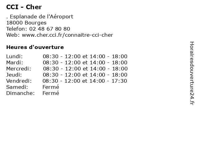 | Vendredi | 08:30-12:00 et 14:00-17:30 |