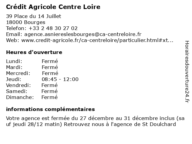 1 Crédit Agricole Centre Loire (Distance: 2,53 km) 374 Route d'Orléans, 18230 Saint-Doulchard agricole, centre, crédit, loire 2 Crédit Agricole Centre Loire (Distance: 3,07 km) 38 Rue de Turly, 18000 Bourges agricole, centre, crédit, loire 3 Crédit Agricole Centre Loire (Distance: 3,49 km) 8 Place de l'Hôtel de Ville, 18230 Saint-Doulchard agricole, centre, crédit, loire 4 Crédit Agricole Centre Loire (Distance: 4,10 km) 1 Rue Parmentier, 18000 Bourges agricole, centre, crédit, loire 5 Crédit Agricole Centre Loire (Distance: 4,34 km) 18 Rue Littré, 18000 Bourges agricole, centre, crédit, loire 6 Crédit Agricole Centre Loire (Distance: 4,85 km) 39 Rue de Sarrebourg, 18000 Bourges agricole, centre, crédit, loire |