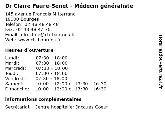 | Vendredi | 07:30-18:00 |