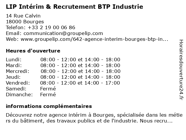 1 Agence d'Intérim Manpower Bourges (Distance: 0,08 km) 36 Cours Avaricum, 18000 Bourges agence, agence de recrutement, agence intérim, agence pour l'emploi, bourges, cabinet de recrutement, cdi, d'intérim, intérim, manpower, recrutement 2 Régional Intérim (Distance: 0,37 km) 16 Avenue Jean Jaurès, 18000 Bourges agence, interim, intérim, régional 3 OPTINERIS agence d'intérim - Bourges (Distance: 0,43 km) 4 Rue des Poulies, 18000 Bourges agence, bourges, d'intérim, optineris 4 Triangle Intérim (Distance: 0,44 km) 54-56 Avenue Jean Jaurès, 18000 Bourges embauche, emploi, intérim, recrutement, triangle 5 Centre de recrutement (CIRFA) (Distance: 0,78 km) 10 Avenue du 95E de Ligne, 18000 Bourges centre, cirfa, de, militaire, recrutement 6 Chronos Intérim (Distance: 0,83 km) 5 place du Général leclerc, 18000 Bourges agence, cdd, cdi, chronos, emploi, formation, intérim, travail |