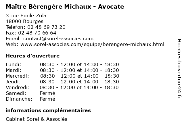 | Lundi | 08:30-12:00 et 14:00-18:30 |