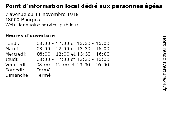 | Mardi | 08:00-12:00 et 13:30-16:00 |