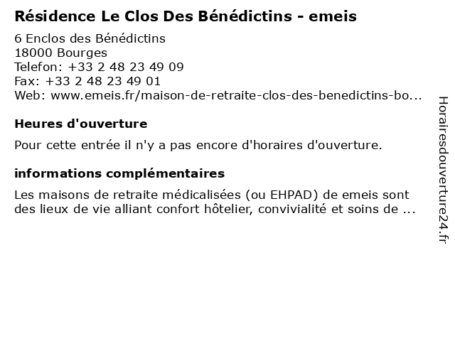 | Appeler Résidence Le Clos Des Bénédictins - emeis | |