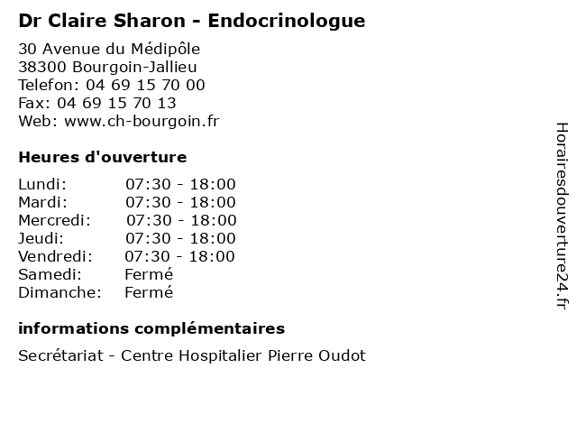 | Vendredi | 07:30-18:00 |