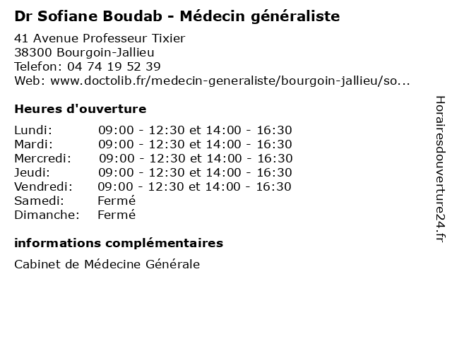 Lundi | 09:00-12:30 et 14:00-16:30 |