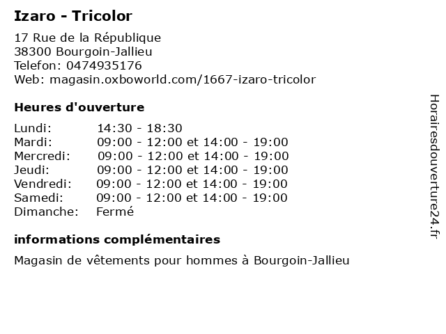 | Samedi | 09:00-12:00 et 14:00-19:00 |
