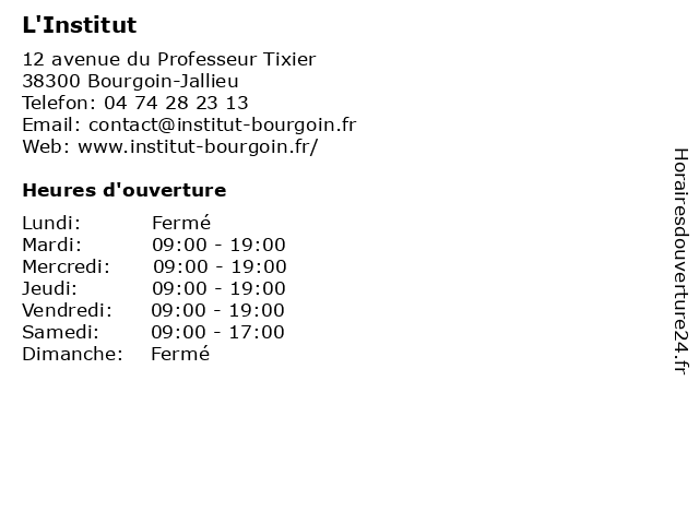 | 1 Institut 100% Beauté (Distance: 0,14 km) 51 Avenue du Professeur Tixier, 38300 Bourgoin-Jallieu 100%, beauté, hamman, institut, salon, soins, spa 2 Institut Pivoine (Distance: 0,34 km) 4 Rue de la Halle, 38300 Bourgoin-Jallieu institut, le soin hydra peeling, massage, pivoine, soins corp, soins visage 3 Institut NoSens (Distance: 0,48 km) 3 Allée des Marettes, 38300 Bourgoin-Jallieu institut, nosens, ongles, sauna, soins visage, spa 4 Institut Juste Pour Soi (Distance: 10,49 km) 164 Chemin du Ru, 38440 Meyrieu-les-Étangs institut, juste, pour, soi 5 L'Instant - Institut de Beauté (Distance: 11,49 km) 63 Place Joseph Serlin, 38290 La Verpillère beauté, de, institut, l'instant, manucure, massage, soins, épilation 6 Institut Miss Yann (Distance: 11,97 km) 733 Rue de la République, 38290 La Verpillière beauté, institut, miss, relax, spa, yann, épilation |
