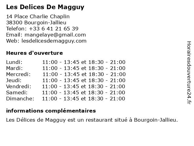 | Mardi | 11:00-13:45 et 18:30-21:00 |