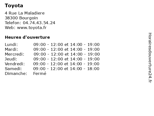 1 Toyota (Apres-Vente) (Distance: 0,00 km) 4 Rue La Maladiere, 38300 Bourgoin apres, automobiles, concéssionnaire, garage, motos, toyota, vente 2 Toyota (Distance: 25,84 km) 22 Rue du 23 août 1944, 69780 Mions automobiles, concéssionnaire, garage, motos, toyota 3 Toyota Henon (Distance: 33,69 km) 672 Rue Des Freres Bertrand, 69200 Venissieux atelier, automobiles, garage, henon, motos - concessionnaire, toyota 4 Toyota Henon (Apres-vente ) (Distance: 33,69 km) 672 Rue Des Freres Bertrand, 69200 Venissieux apres, atelier, automobiles, garage, henon, motos - concessionnaire, toyota, vente 5 Toyota Sivam Lyon (Distance: 33,74 km) 10 Rue des Frères Bertrand, 69200 Venissieux atelier, automobiles, garage, lyon, motos - concessionnaire, sivam, toyota 6 Toyota Sivam Lyon ( Apres-vente ) (Distance: 33,74 km) 10 Rue des Frères Bertrand, 69200 Venissieux apres, atelier, automobiles, garage, lyon, motos - concessionnaire, sivam, toyota, vente |