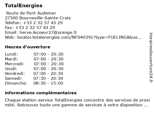 1 TotalEnergies - STATION SERVICE MEDINE (Distance: 2,29 km) 33 RTE DE MEDINE - CD.89, 27350 VALLETOT gas station, medine, service, station, station service, tankstelle, total, totalenergies 2 TotalEnergies Access - RELAIS TANCARVILLE (Distance: 15,72 km) RD 910 - ROUTE DE BOLBEC, 76430 TANCARVILLE access, gas station, relais, station service, tancarville, tankstelle, total, totalenergies 3 TotalEnergies - SAS GARAGE DUFOUR (Distance: 17,71 km) 12 ROUTE DES ANGLAIS, 27260 EPAIGNES dufour, garage, gas station, sas, station service, tankstelle, total, totalenergies 4 TotalEnergies - REL. BOSGOUET NORD (Distance: 18,30 km) A13 - AIRE DE BOSGOUET NORD, 27310 BOSGOUET bosgouet, nord, rel., station autoroute, totalenergies 5 TotalEnergies Station de recharge (Distance: 18,58 km) A13, 27310 Bosgouet borne de recharge, borne de recharge autoroute, borne de recharge rapide, ccs, chademo, charge haute puissance, charge+, charging station, de, ev, high power charge, ma charge rapide, mobility, recharge, recharger ma voiture, recharger voiture, station, station autouroute, station de recharge, station-service, supercharger, tankstelle, total, totalaccess, totalenergie, totalenergies 6 Station-Service TotalEnergies (Distance: 19,10 km) 930 Rue Louis Gillain, 32190 Saint Jean de Poutge carburant, essence, pompes, service, station, totalenergies, véhicules |