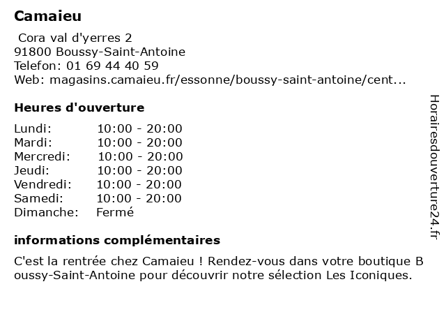 1 Camaieu (Distance: 7,58 km) 3 Allée du préambule, 77127 Lieusaint camaieu, magasin de chaussures, magasin de t-shirts, magasin d’accessoires de mode, maroquinerie, mode 2 Camaieu (Distance: 11,79 km) Route de fleury, 91170 Viry-Chatillon camaieu, magasin de chaussures, magasin de t-shirts, magasin d’accessoires de mode, maroquinerie, mode 3 Camaieu (Distance: 12,15 km) Créteil soleil, 94000 Creteil camaieu, magasin de chaussures, magasin de t-shirts, magasin d’accessoires de mode, maroquinerie, mode 4 Camaieu (Distance: 12,59 km) Route de provins, 94490 Ormesson camaieu, magasin de chaussures, magasin de t-shirts, magasin d’accessoires de mode, maroquinerie, mode 5 Camaieu (Distance: 13,31 km) 5 Rue baratte cholet, 94100 Saint-Maur-Des-Fosses camaieu, magasin de chaussures, magasin de t-shirts, magasin d’accessoires de mode, maroquinerie, mode 6 Camaieu (Distance: 13,77 km) - Avenue du Général de Gaulle, 94000 Creteil accessoires, boutiques, camaieu, camaïeu, chemises, pantalons, vêtements |