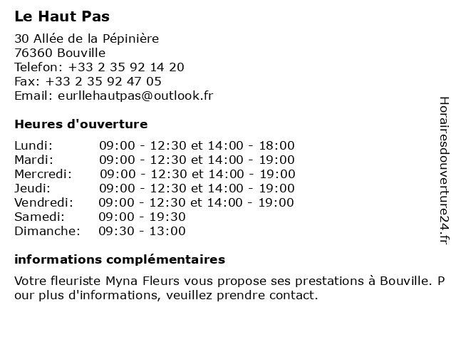 | Mercredi | 09:00-12:30 et 14:00-19:00 |