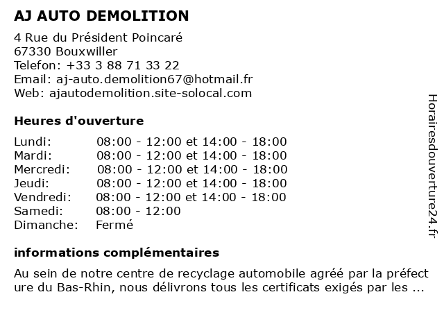 | Mercredi | 08:00-12:00 et 14:00-18:00 |
