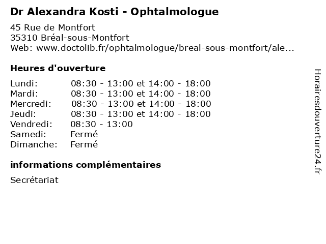 | Lundi | 08:30-13:00 et 14:00-18:00 |