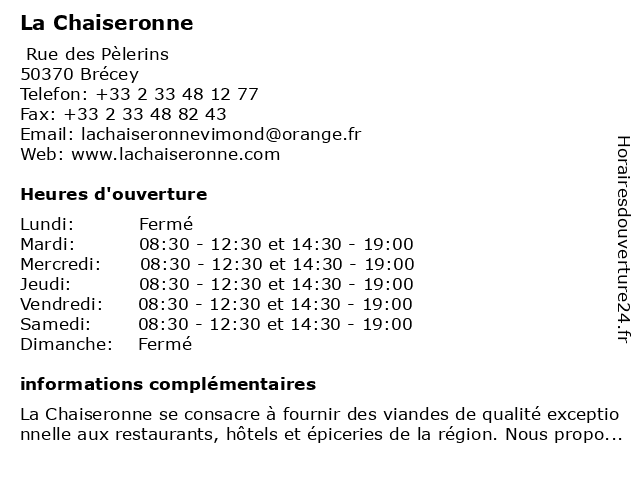 Samedi | 08:30-12:30 et 14:30-19:00 |
