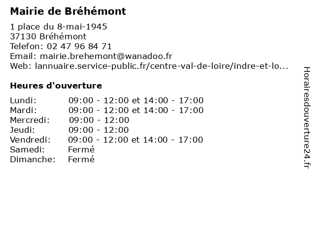 | Mardi | 09:00-12:00 et 14:00-17:00 |
