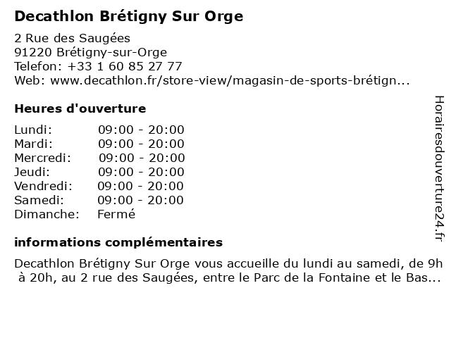1 Decathlon (Distance: 0,05 km) 2 Rue des Saugées, 91220 Brétigny-sur-Orge accessoires, decathlon, fournitures, sport, vêtements, équipement 2 Decathlon Evry (Distance: 9,24 km) 2 Boulevard de l'Europe-Valéry Giscard d'Estaing, 91000 Évry-Courcouronnes decathlon, evry 3 Decathlon Essentiel Villebon Sur Yvette (Distance: 9,43 km) 2 Avenue de la Plesse, 91140 Villebon-sur-Yvette decathlon, essentiel, sur, villebon, yvette 4 Decathlon Simply (Distance: 9,64 km) 2 Avenue de la Plesse, 91140 Villebon-sur-Yvette beaute, chaussures, decathlon, decoration, mode enfants, mode femme, mode homme, restauration, service, simply, sport, telephonie 5 Decathlon (Distance: 11,65 km) 6 Avenue des Courtes Epluches, 91100 Villabe accessoires, chaussures, decathlon, enfant, femme, homme, marques, sport 6 Decathlon Villabé (Distance: 11,65 km) 6 Avenue des courtes epluches, 91100 Villabe club de football, decathlon, magasin d'articles de ski, magasin d'équipements sportifs, magasin de matériel de camping, magasin de matériel de pêche, magasin de vélos, magasin de vêtements de sport, villabé |