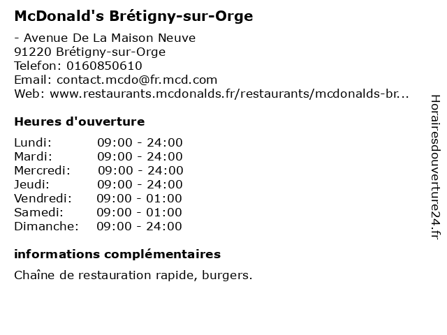 1 McDonald's (Distance: 9,37 km) - Route de Fleury, 91170 Viry-Châtillon burgers, fast, food, hamburgers, mcdonald's, rapide, restaurant, restauration 2 McDonald's (Distance: 9,56 km) 1-3 Rue Alcide de Gasperi, 91080 Courcouronnes burgers, fast, food, hamburgers, mcdonald's, rapide, restaurant, restauration 3 McDonald's Villabé Zone Commerciale (Distance: 9,80 km) - ZAC des Brateaux, 91100 Villabé burgers, commerciale, fast, food, hamburgers, mcdonald's, rapide, restaurant, restauration, villabé, zone 4 McDonald's Villabé A6 (Distance: 10,49 km) - Départementale 260, 91100 Villabé a6, burgers, fast, food, hamburgers, mcdonald's, rapide, restaurant, restauration, villabé 5 McDonald's (Distance: 11,34 km) - Zac de Montvrain, 91540 Mennecy burgers, fast, food, hamburgers, mcdonald's, rapide, restaurant, restauration 6 McDonald's (Distance: 11,76 km) - Avenue Paul Maintenant, 91100 Corbeil-Essonnes burgers, fast, food, hamburgers, mcdonald's, rapide, restaurant, restauration |