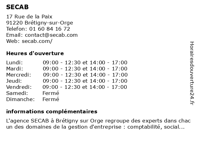 Lundi | 09:00-12:30 et 14:00-17:00 |