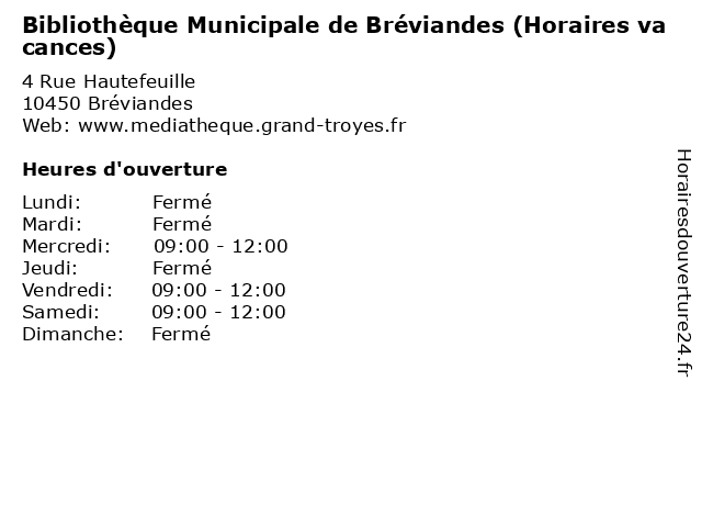 Termes de recherche pour Bibliothèque Municipale de Bréviandes (Horaires vacances):de, horaires, services, vacances, bibliotheque, livre, municipale, mediatheque, bréviandes |
