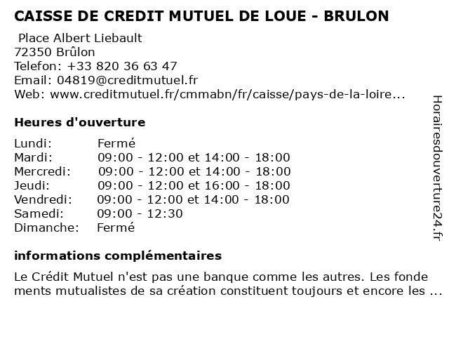 Termes de recherche pour CAISSE DE CREDIT MUTUEL DE LOUE - BRULON:de, crédit, mutuel, caisse, loue, brûlon |