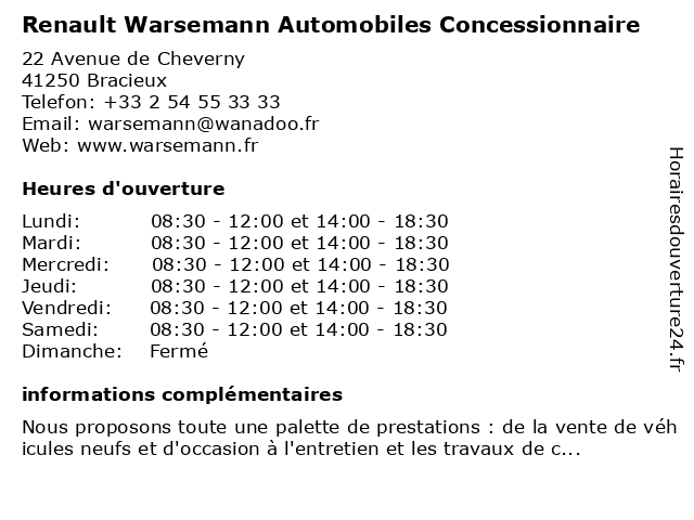 | Samedi | 08:30-12:00 et 14:00-18:30 |