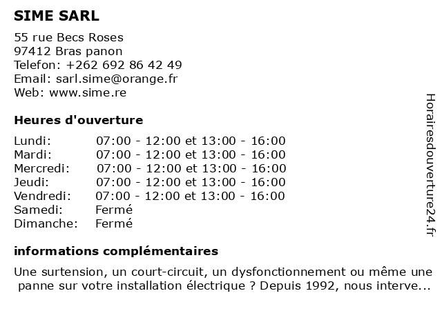 Lundi | 07:00-12:00 et 13:00-16:00 |