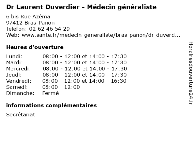 3 Dr Thierry Drevon - Médecin généraliste (Distance: 0,00 km) 6 bis Rue Azéma, 97412 Bras-Panon consultation, docteur, dr, drevon, généraliste, med, médecin, thierry, traitement 4 Dr Frederic Deschepper - Médecin généraliste (Distance: 0,00 km) 6 bis Rue Azéma, 97412 Bras-Panon consultation, deschepper, docteur, dr, frederic, généraliste, med, médecin, traitement 5 Dr Bernard Goeury - Médecin généraliste (Distance: 2,02 km) 2 Rue Gabriel Vayaboury, 97440 Saint-André bernard, consultation, docteur, dr, dr., goeury, générale, généraliste, médecin, médecine, santé 6 Dr Bertrand Ciceron - Médecin généraliste (Distance: 2,05 km) 259 Rue de la Cressonnière, 97440 Saint-André bertrand, ciceron, consultation, docteur, dr, généraliste, med, médecin, traitement |