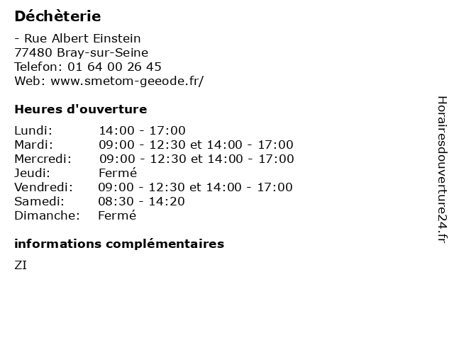 | Mercredi | 09:00-12:30 et 14:00-17:00 |
