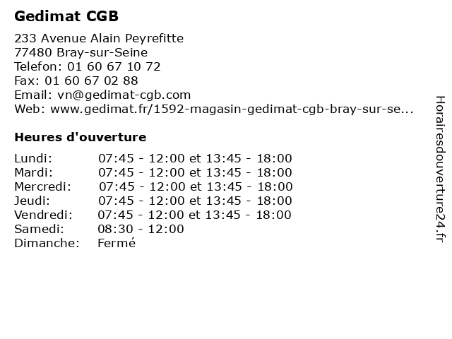 | Lundi | 07:45-12:00 et 13:45-18:00 |