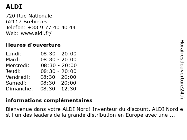 1 Aldi (Distance: 5,47 km) - Angle Rue de Cambrai et Avenue du 4 Septembre, 59500 Douai aldi, commerce de détail, de l'industrie, internationale, épicerie 4 Aldi (Distance: 12,08 km) 1 Chemin du Marais, 62740 Fouquières-les-Lens aldi, alimentaire, alimentation, courses, discount, distributeur, fruits, légumes, supermarché, supérette, épicerie 5 ALDI (Distance: 13,33 km) 10/12 Rue d'Harnes, 62218 Loison-sous-Lens aldi, commerce de détail, de l'industrie, internationale, épicerie 6 Aldi (Distance: 13,65 km) - Cité Barrois, 59146 Pecquencourt aldi, alimentaire, alimentation, courses, discount, distributeur, fruits, légumes, supermarché, supérette, épicerie |