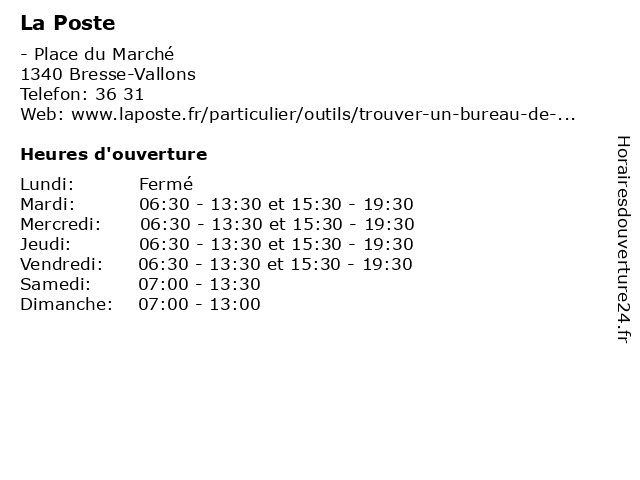 | Mardi | 06:30-13:30 et 15:30-19:30 |