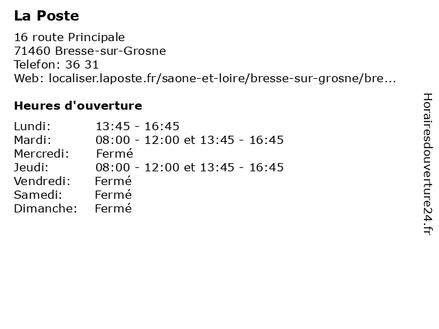 1 La Poste (Distance: 5,18 km) 5 Rue de la Croix-Rousse, 71240 Etrigny agence, assurance, banque, banque postale, bureau de poste, chronopost, colis, courrier, dps, expéditions internationales, la, point, postale, poste, relais, timbres, téléphonie, ups, western union 2 La Poste (Distance: 6,15 km) 9 Route de Joncy, 71460 Saint-Gengoux-le-National express chronopost, la, poste, réexpédition internationale 3 La Poste (Distance: 6,80 km) grande Rue, 71240 Nanton agence, assurance, banque, banque postale, bureau de poste, chronopost, colis, courrier, dps, expéditions internationales, la, point, postale, poste, relais, timbres, téléphonie, ups, western union 4 La Poste (Distance: 9,92 km) - Grande Rue, 71240 Nanton agence, colis, courriers, expédition, la, postale, poste, relais 5 La Poste (Distance: 10,04 km) 12 rue du Lavoir, 71460 Bonnay agence, assurance, banque, banque postale, bureau de poste, chronopost, colis, courrier, dps, expéditions internationales, la, point, postale, poste, relais, timbres, téléphonie, ups, western union 6 La Poste (Distance: 11,44 km) 13 chemin de la Condemine, 71700 Boyer agence, assurance, banque, banque postale, bureau de poste, chronopost, colis, courrier, dps, expéditions internationales, la, point, postale, poste, relais, timbres, téléphonie, ups, western union |
