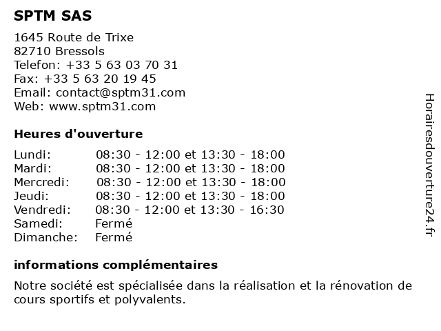 | Lundi | 08:30-12:00 et 13:30-18:00 |
