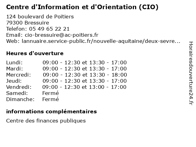 | Mercredi | 09:00-12:30 et 13:30-18:00 |
