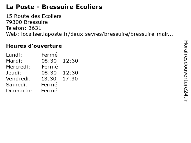 Termes de recherche pour La Poste - Bressuire Ecoliers:poste, relais, la, bressuire, agence, postale, colis, expédition, courriers, ecoliers |
