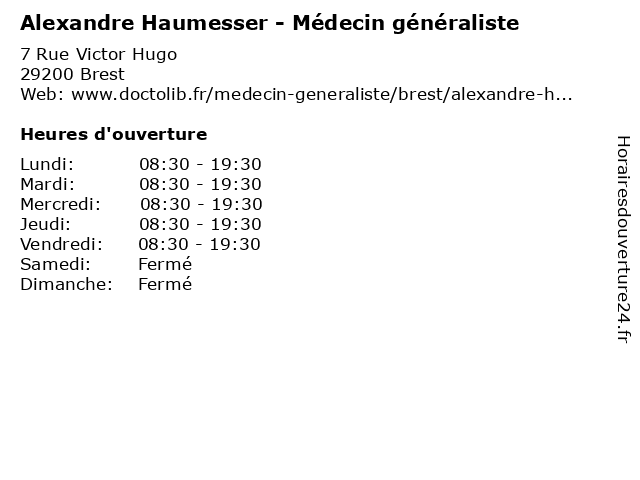 | Lundi | 08:30-19:30 |
