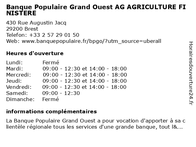 1 Banque Populaire Grand Ouest AGENCE ENTREPRISES BREST (Distance: 0,01 km) 430 Rue Docteur Augustin Jacq, 29200 Brest agence, banque, brest, entreprises, grand, ouest, populaire 2 Crédit Maritime Grand Ouest AGENCE ENTREPRISES BREST (Distance: 0,02 km) 430 Rue Docteur Augustin Jacq, 29200 Brest agence, brest, crédit, entreprises, grand, maritime, ouest 3 Banque Alimentaire du Finistère (Distance: 0,92 km) 9 Rue de Kervezennec, 29200 Brest aides, alimentaire, association, banque, dons, du, finistère, soutiens 4 AXA Assurance et Banque Nicolas Matteotti (Distance: 1,53 km) 200 Rue Benoîte Groult, 29490 Guipavas assurance, assurance appartement, assurance auto, assurance entreprise, assurance epargne, assurance habitation, assurance maison, assurance professionnelle, assurance santé, assurance voiture, axa, banque, et, matteotti, nicolas 5 Banque Casino (Distance: 1,60 km) 29 Route de Gouesnou, 29200 Brest banque, cafe, casino, chaussures, enfants, femme, mode, restaurant 6 La Banque Postale (Distance: 1,60 km) 29 Route de Gouesnou, 29200 Brest banque, cafe, chaussures, enfants, femme, la, mode, postale, restaurant |