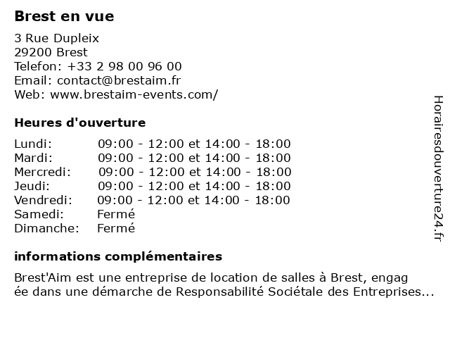 Horaires d'ouverture |