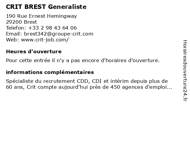 Appeler CRIT BREST Generaliste | |