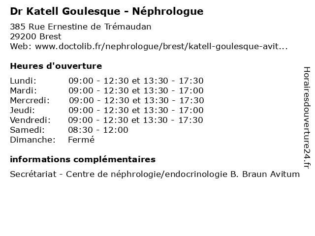 1 Dr Nazim Terki - Néphrologue (Distance: 0,00 km) 385 Rue Ernestine de Trémaudan, 29200 Brest dr, insuffisance, nazim, nephrologie, nephrologue, néphrologue, rénale, terki 3 Dr Katell Penven - Dermatologue (Distance: 5,08 km) 355 Rue de l’Elorn, 29200 Brest consultation, dermatologue, docteur, dr, katell, med, médecin, penven, traitement 4 Dr Emmanuel Chaffara - Néphrologue (Distance: 5,54 km) - Boulevard Tanguy Prigent, 29200 Brest chaffara, consultation, docteur, dr, emmanuel, med, médecin, néphrologue, traitement 5 Dr Emilie Cornec-Le Gall - Néphrologue (Distance: 5,54 km) - Boulevard Tanguy Prigent, 29200 Brest consultation, cornec, docteur, dr, emilie, gall, le, med, médecin, néphrologue, traitement 6 Dr Morgane Gosselin - Néphrologue (Distance: 5,54 km) - Boulevard Tanguy Prigent, 29200 Brest consultation, docteur, dr, gosselin, med, morgane, médecin, néphrologue, traitement |