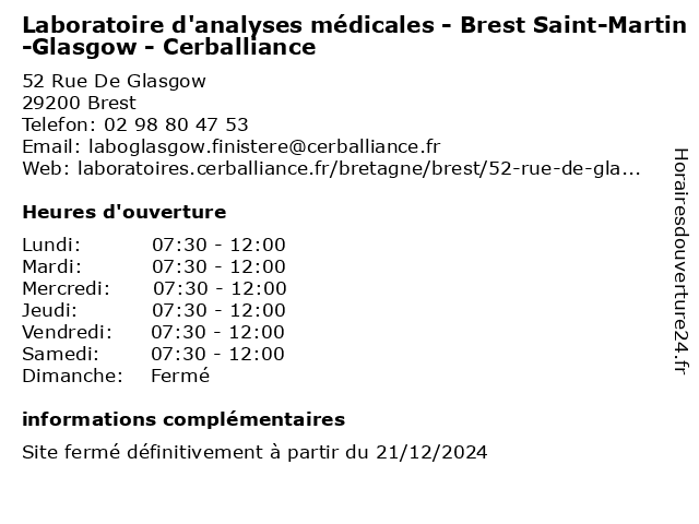 Termes de recherche pour Laboratoire d'analyses médicales - Brest Saint-Martin-Glasgow - Cerballiance:saint, brest, martin, d'analyses, laboratoire, médicales, cerballiance, glasgow, dépistages |