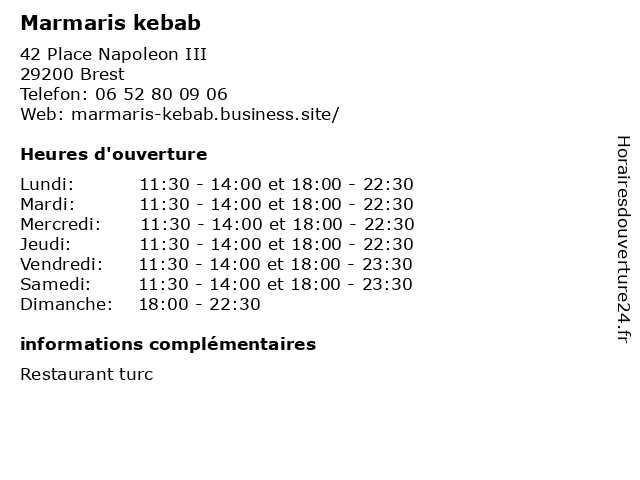 Mercredi | 11:30-14:00 et 18:00-22:30 |