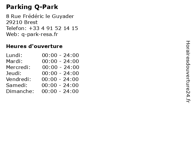 5 Parking Q-Park Brest Colbert (Distance: 0,03 km) 8 Rue Frédéric le Guyader, 29200 Brest brest, colbert, park, parking, stationnement 6 Parking Brest Kerros - EFFIA (Distance: 0,32 km) Rue de Kerros, 29200 Brest brest, effia, kerros, parking |