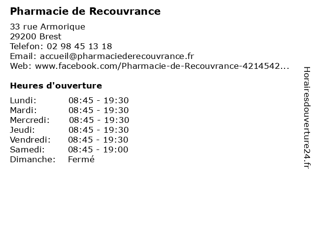 | Lundi | 08:45-19:30 |