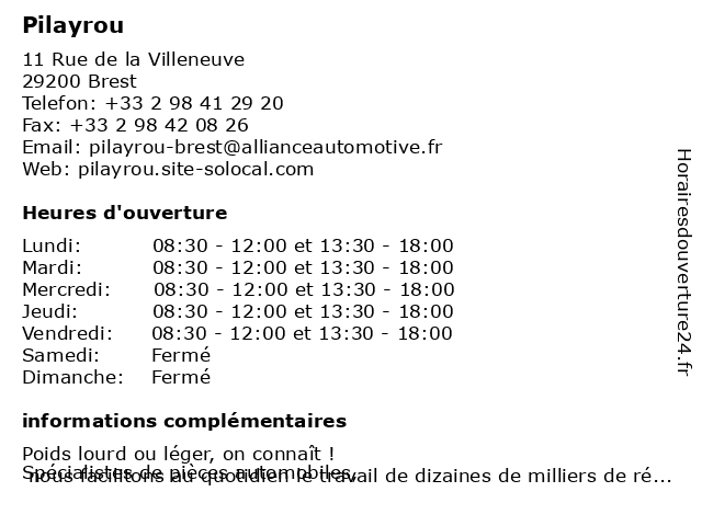 1 Pilayrou - Groupauto (Distance: 0,92 km) 5 rue du commandant Yves Mindren, 29200 Brest accessoires, auto, garage, groupauto, magasin, outillage, pilayrou, vente, équipement |
